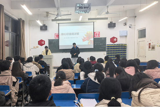活动伊始,同学们共同学习“三会两制一课”制度,明晰共青团组织生活基本规范。核心学习环节中,通过国家、社会、个人三个维度的系统解读,将“富强、民主”等价值目标与“爱国、敬业”等行为准则具象化,让抽象理念转化为可感知的实践方向。交流探讨中,大家聚焦核心价值观的时代传承,提出从传统文化汲取养分、借助现代科技赋能传播的思路。团支书呼吁大家以核心价值观为指引,在学思践悟中践行青春使命,为社会和谐发展贡献力量。